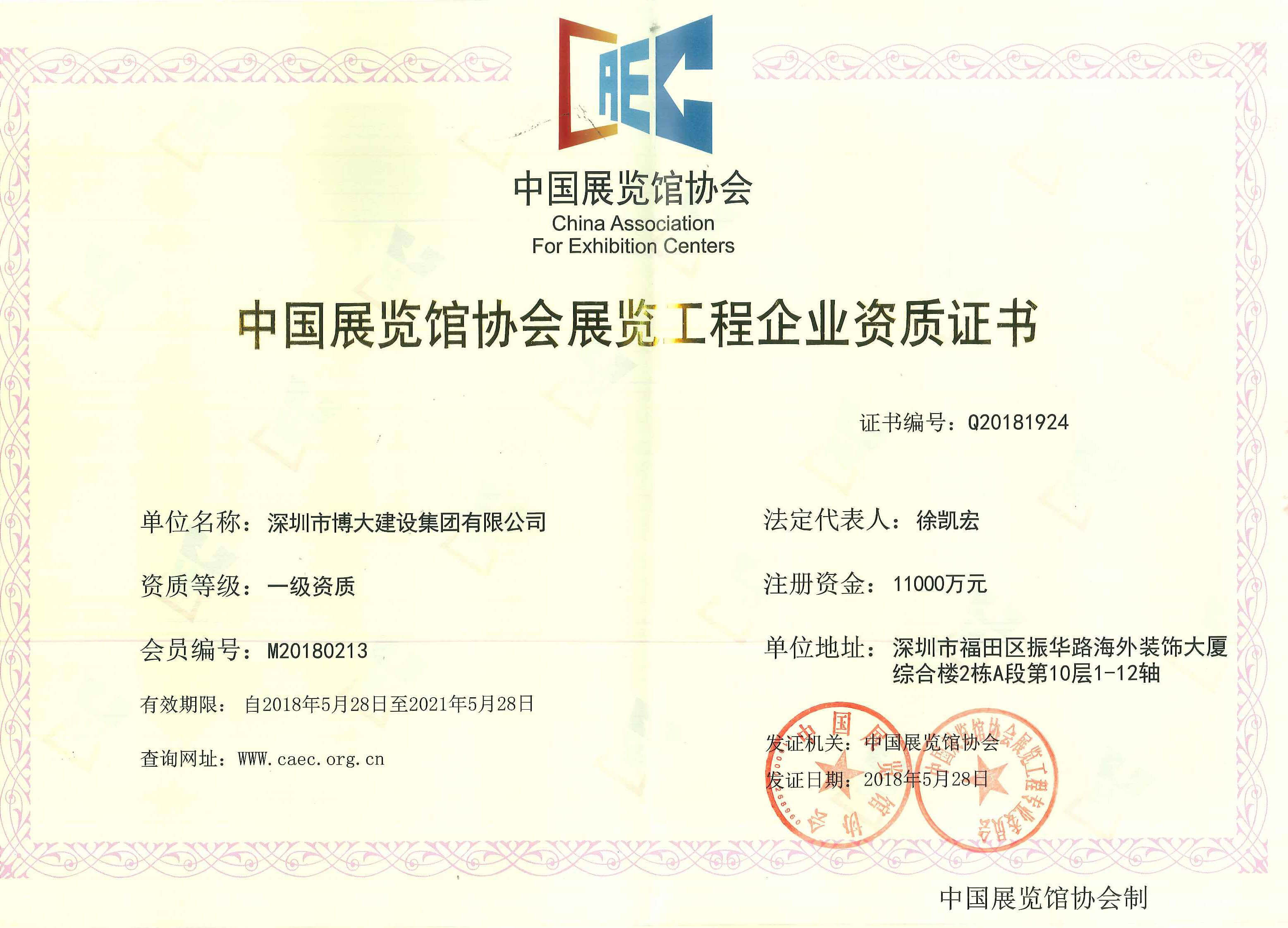 資質 | 博大獲得展覽工程兩個一級資質