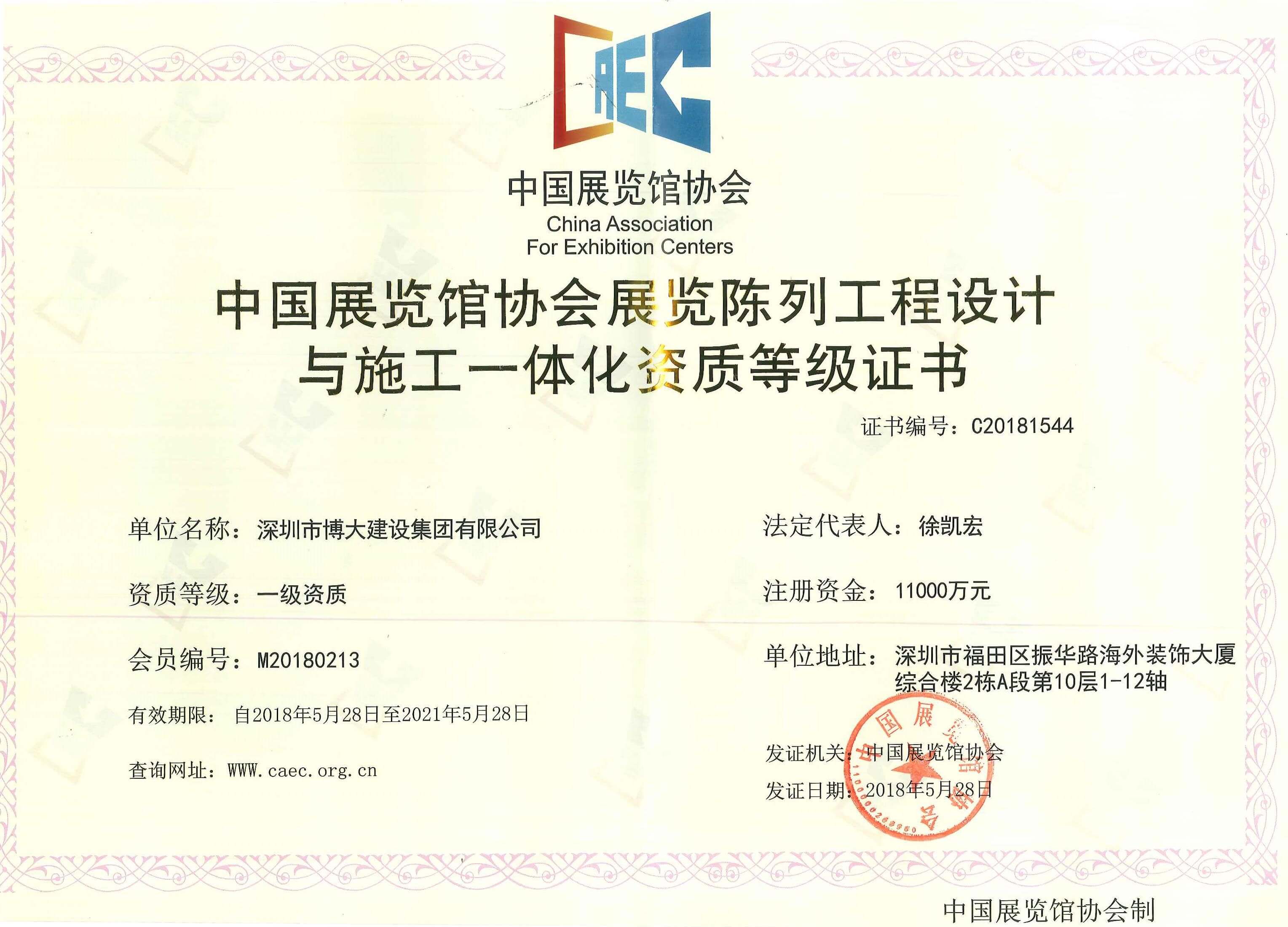 新資質的獲得,代表的是中國展覽館協會對博大建設集團設計與施工能力的認可,為公司打開了一個新的細分市場,進一步完善了博大平臺建設,為實現2018年100億的目標奠定了扎實基礎!